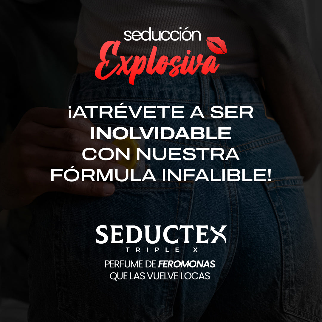 Seductex combina un aroma premium con feromonas científicamente desarrolladas que actúan en el subconsciente femenino, aumentando el deseo y la atracción sexual hacia quien lo usa.